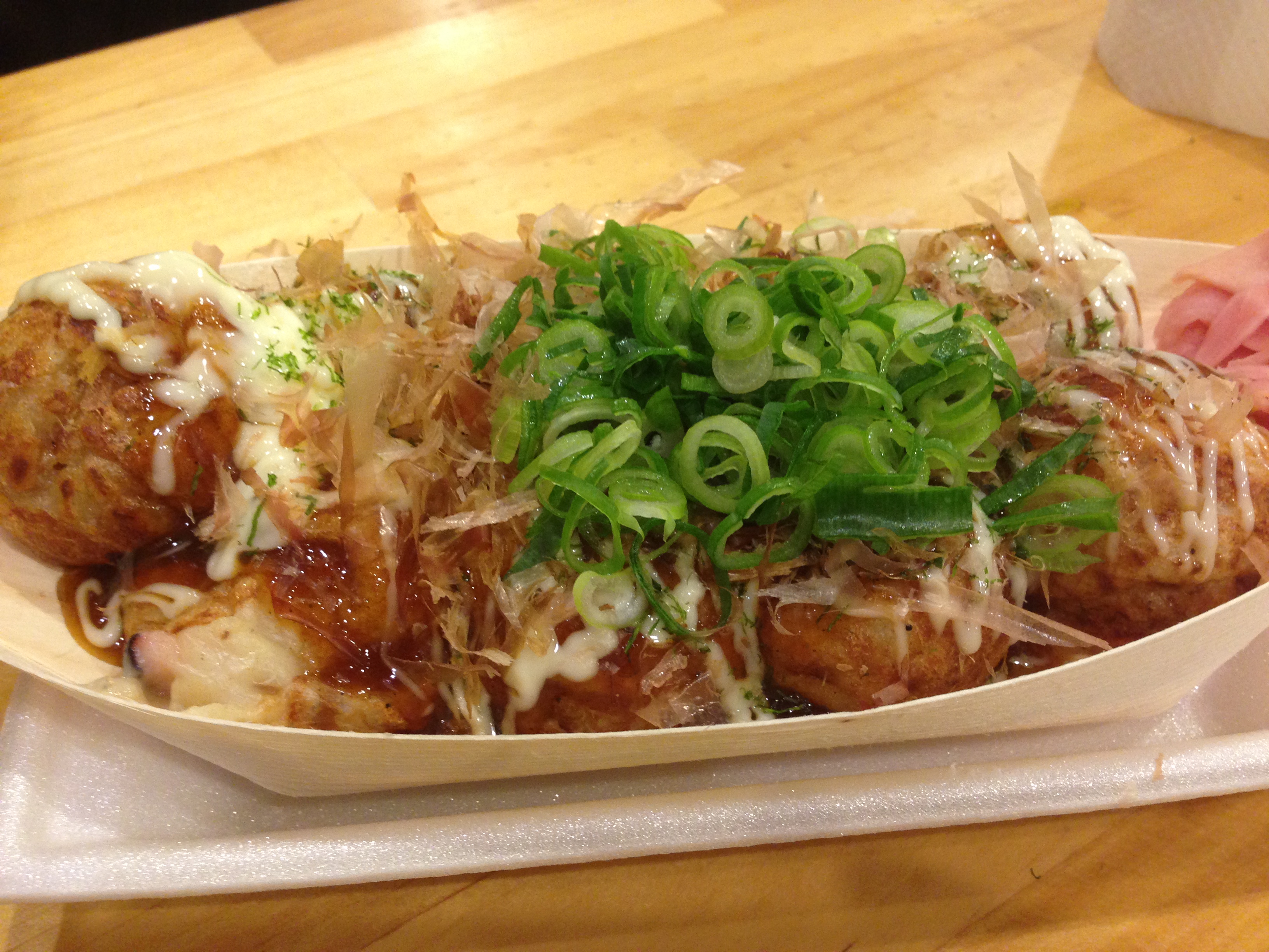 They are served in a polystyrene container or bamboo boat, brushed with a brown worcester sauce mixture, squirted with Japanese mayonnaise and sprinkled with aonori, a type of ground-up seaweed. The final flourish is a generous handful of shaved bonito fish, which melts onto the top. Some vendors also offer chopped spring onion which is delicious.