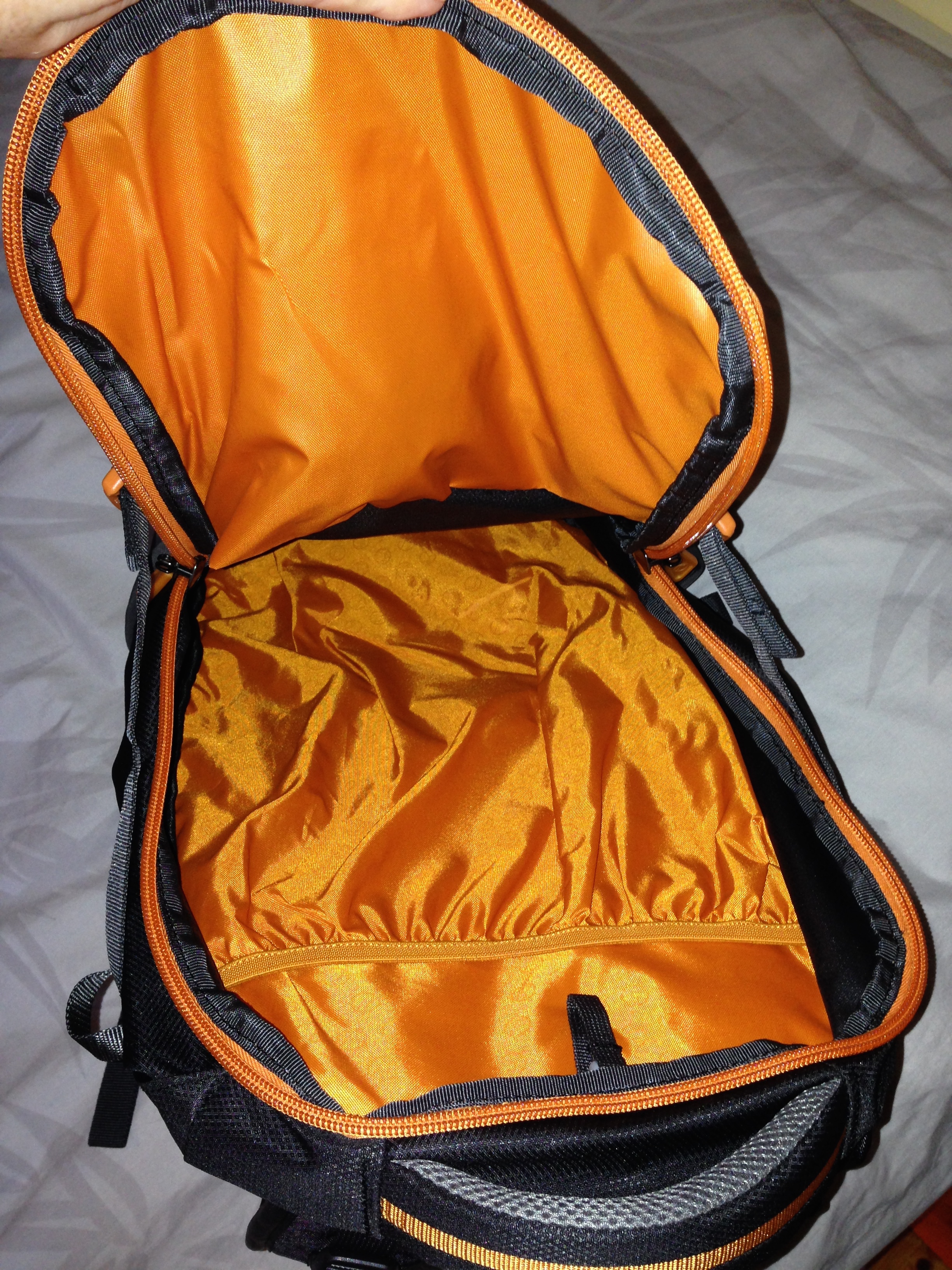 Internally, this is a no-frills travel pack, with only one internal meshed pocket on the opening flap.