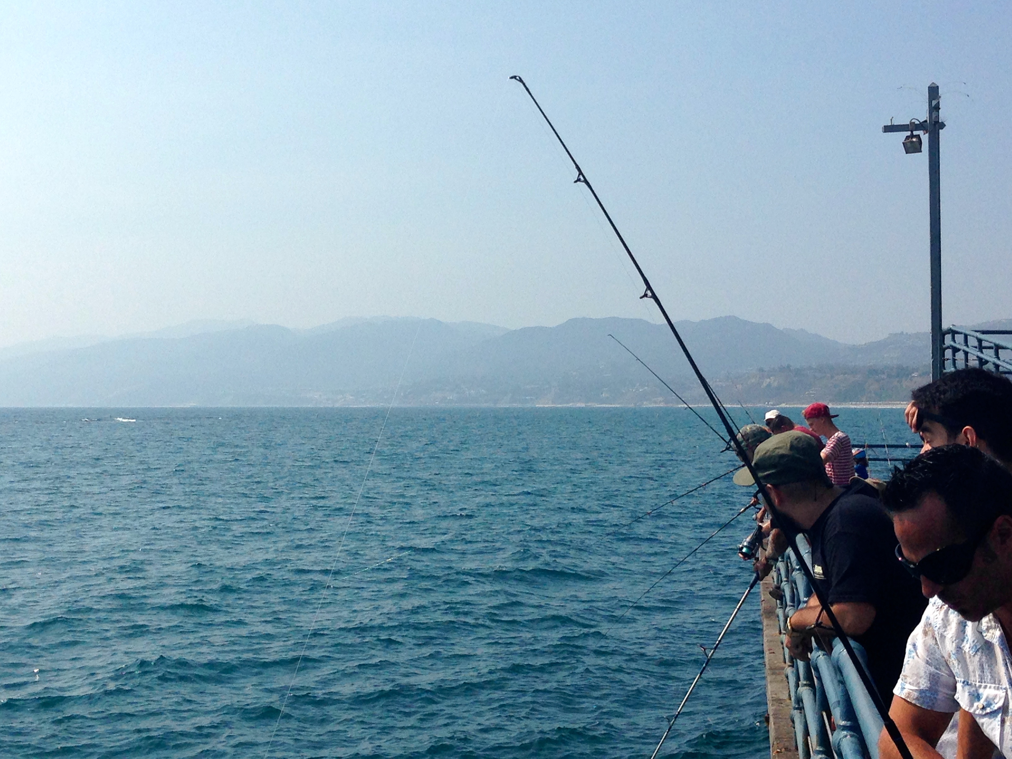 We wander through the Pacific Park fun fair right to the bottom of the pier where friends and families are fishing for halibut, herring, mackerel and sardines.