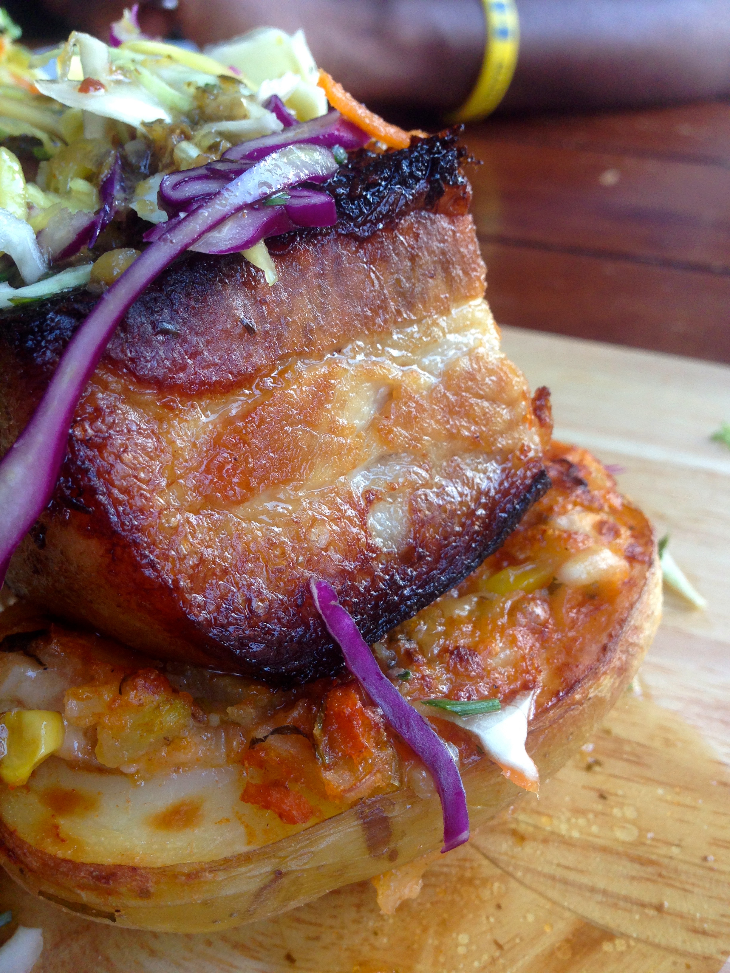 Another glass of Clare Valley shiraz and a Mount Gay Extra Old. We ordered the chorizo meatballs and the calamari to share as a starter, then a porterhouse steak for Orlando and the gnocchi with lamb ragu for me. The meatballs were served with some Turkish bread and a small bowl of salad, and went down a treat.