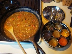 The longer you cook this curry, and the older the pot you cook it in, the better it will taste. Works pretty well in a slow-cooker too, but you have to cook all the spices manually first (method up as far as adding the chicken) as laid out above, then you can leave to simmer in the slow cooker if you wish.